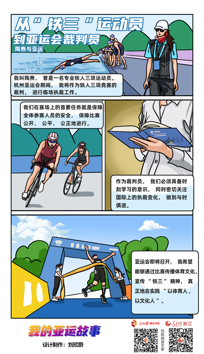 陶焘曾是一名专业铁人三项运动员,目前在湖州师范学院体育学院任教。杭州亚运会期间,她将作为铁人三项竞赛的裁判,进行临场执裁工作。